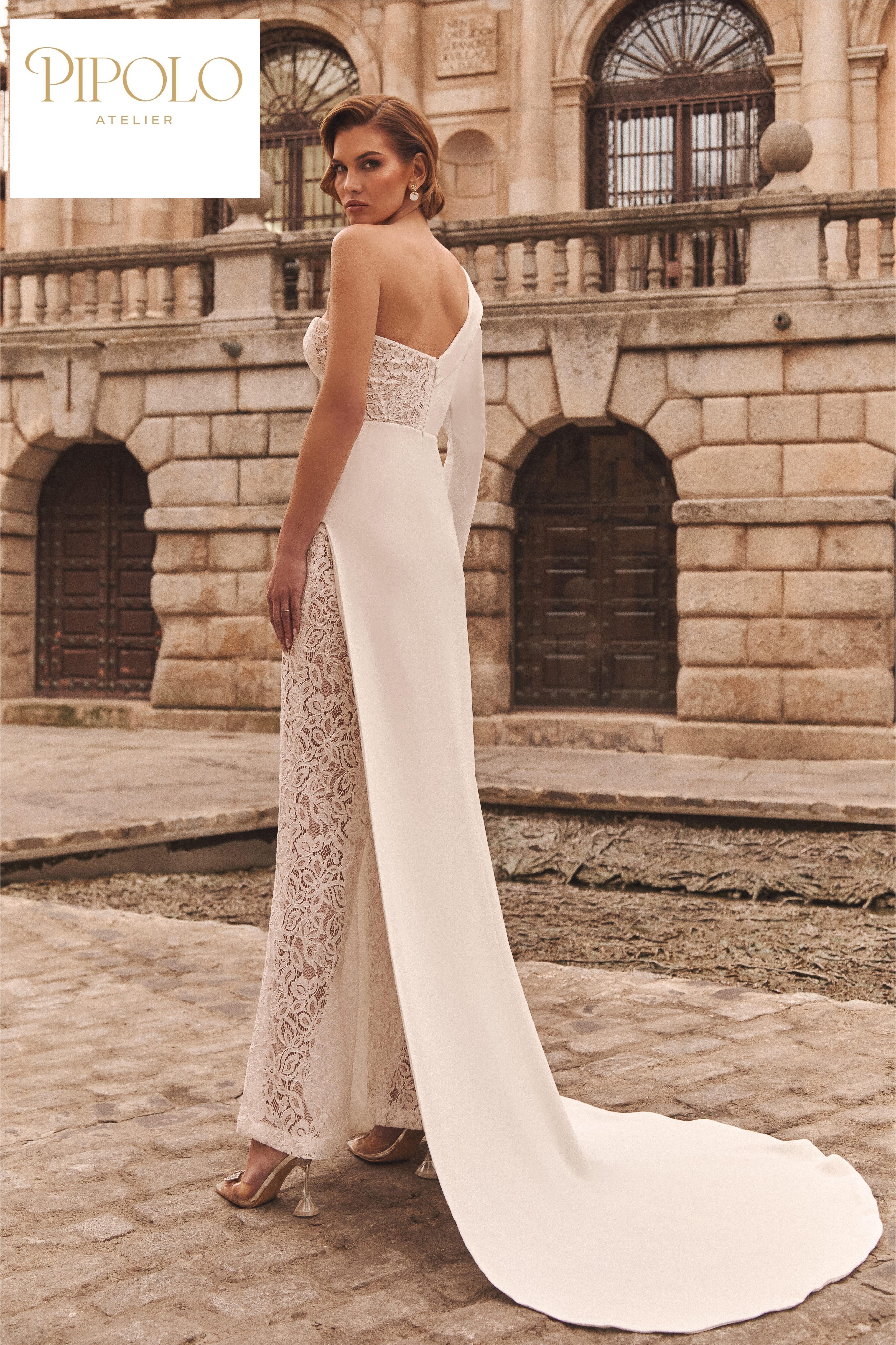 Nelle collezioni proposte da Pipolo Atelier, la jumpsuit dialoga con pizzi raffinati, scollature misurate e tessuti couture, diventando una scelta perfetta per spose che desiderano distinguersi con eleganza, soprattutto nei matrimoni civili, nei cambi abito o nei ricevimenti più informali ma curati.